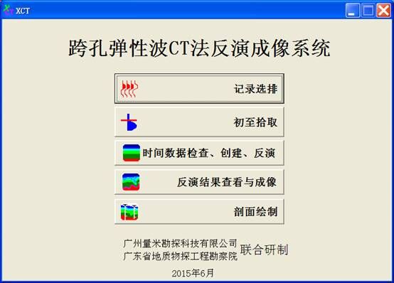 跨孔弹性波CT法数据处理、成图成像、解释、制图系统。软件系统经过沪昆高铁、宁安城际等重大工程使用验证。启动画面及功能模块如下: